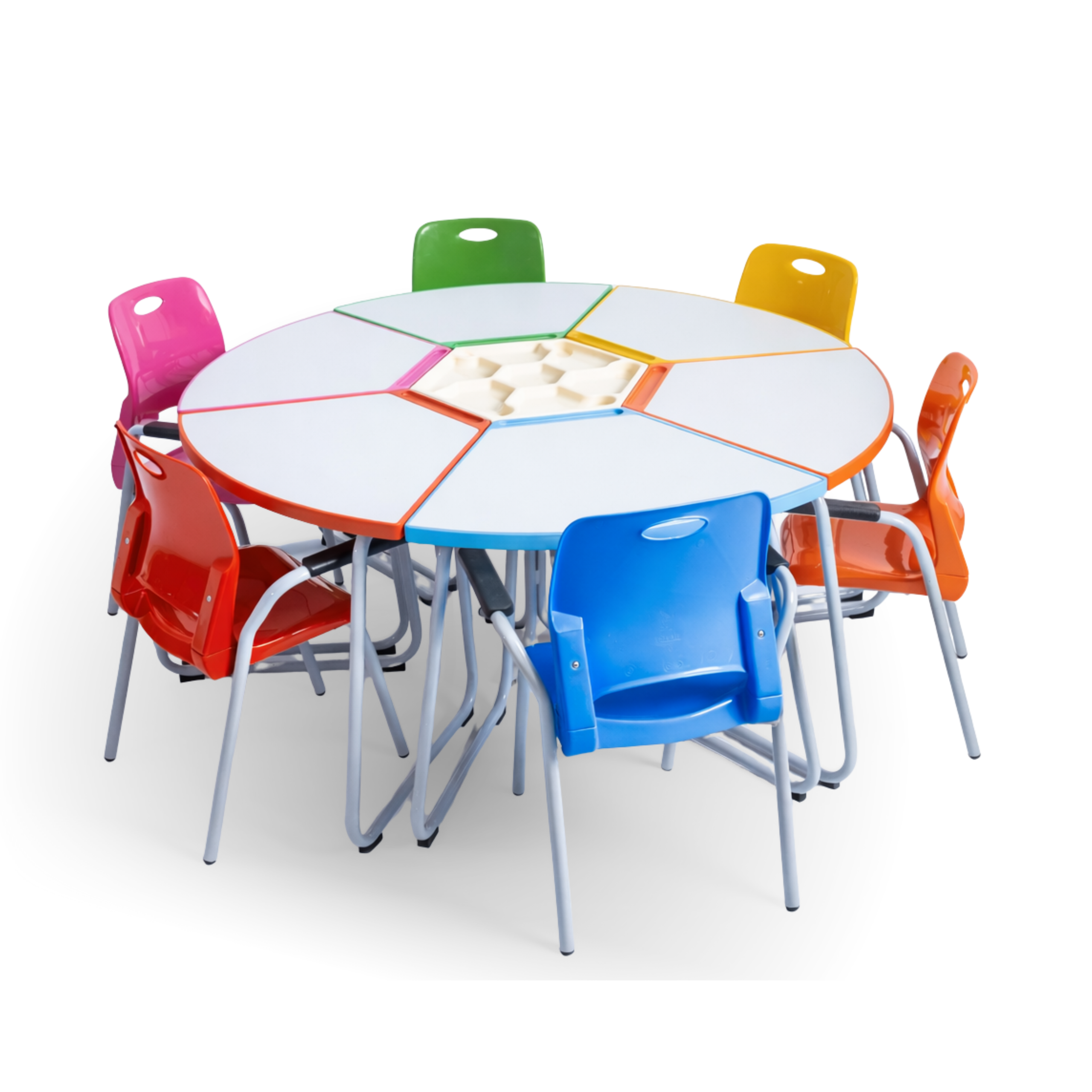 Além de compor cores lindas, nosso conjunto traz mais interação na hora da aula, podendo ficar no modo circular ou individual.